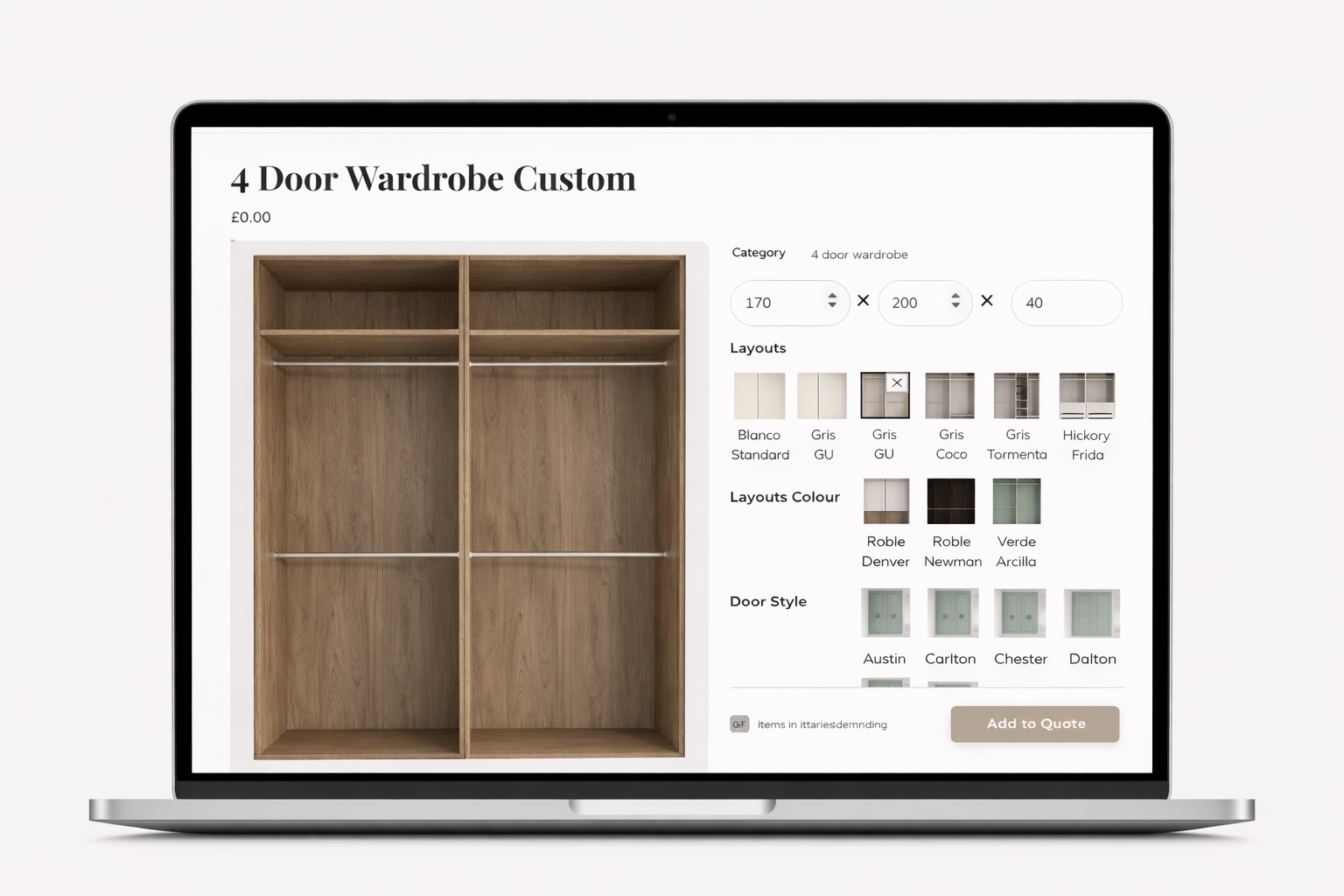 We’ve designed a simplified online design tool that makes choosing your new wardrobe quick and stress-free. Just enter your measurements, select your preferred style, customise the finish, and you’ll see an instant price — no waiting, no guessing. Once you place your order, our team will personally review and confirm your selection before getting your wardrobe ready for delivery. It’s our way of combining smart technology with hands-on service.